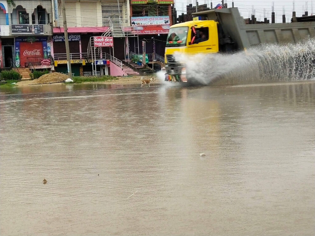 जनकपुरका प्रायःजसो सडक र सरकारी कार्यालयमा पानी जमेको छ भने गहिरो स्थानको घरभित्र पानी पसेको छ ।