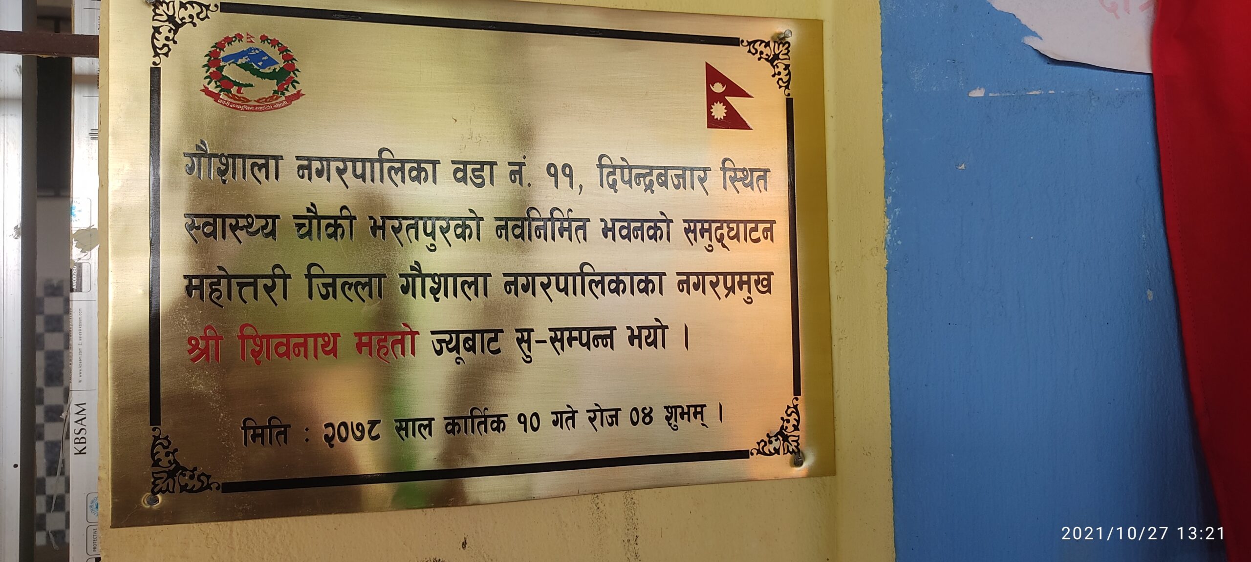 महोत्तरी। महोत्तरीको गौशाला नगरपालिका–११ बिरेन्द्र बजार स्थित रहेका स्वास्थ्य चौकी भरत्तपुरको सुविधा सम्पन्न भवन निर्माण भएको छ।