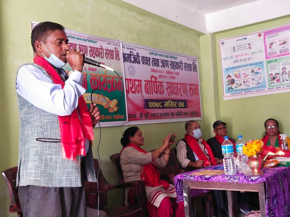 श्रमजीवि बचत तथा ऋण सहकारी संस्थाका अध्यक्ष हरेराम श्रेष्ठकोे अध्यक्षता तथा मिथिला नगरपालिकाका नगरप्रमुख हरिनारायण महतोको प्रमुख आतिथ्यतामा भएको साधारण सभामा विभिन्न प्रतिवेदनहरु सर्वसम्मत रुपले पारित भयो ।