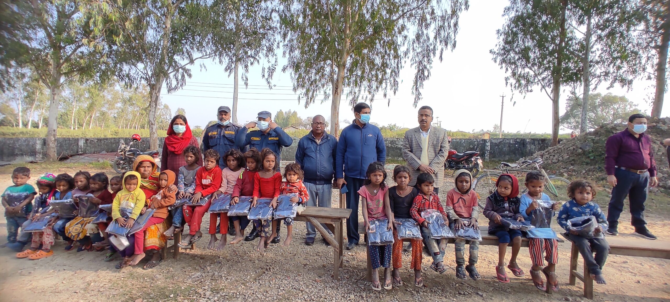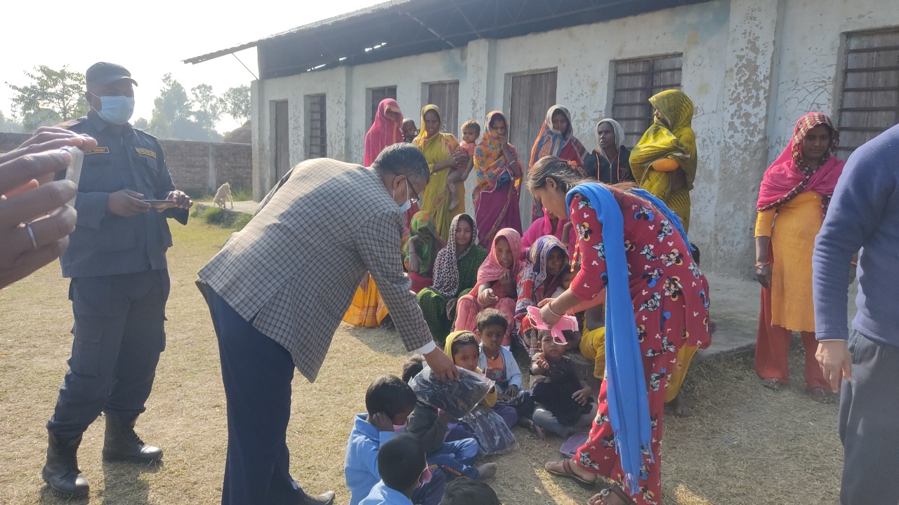 सामुदायिक विद्यालयका दलित समुदायका वालवालिकालाई चिसोबाट बचाउनका लागि विपद व्यवस्थापन समिती मार्फत उनीहरुलाई स्वीटर वितरण गरिएको हो ।