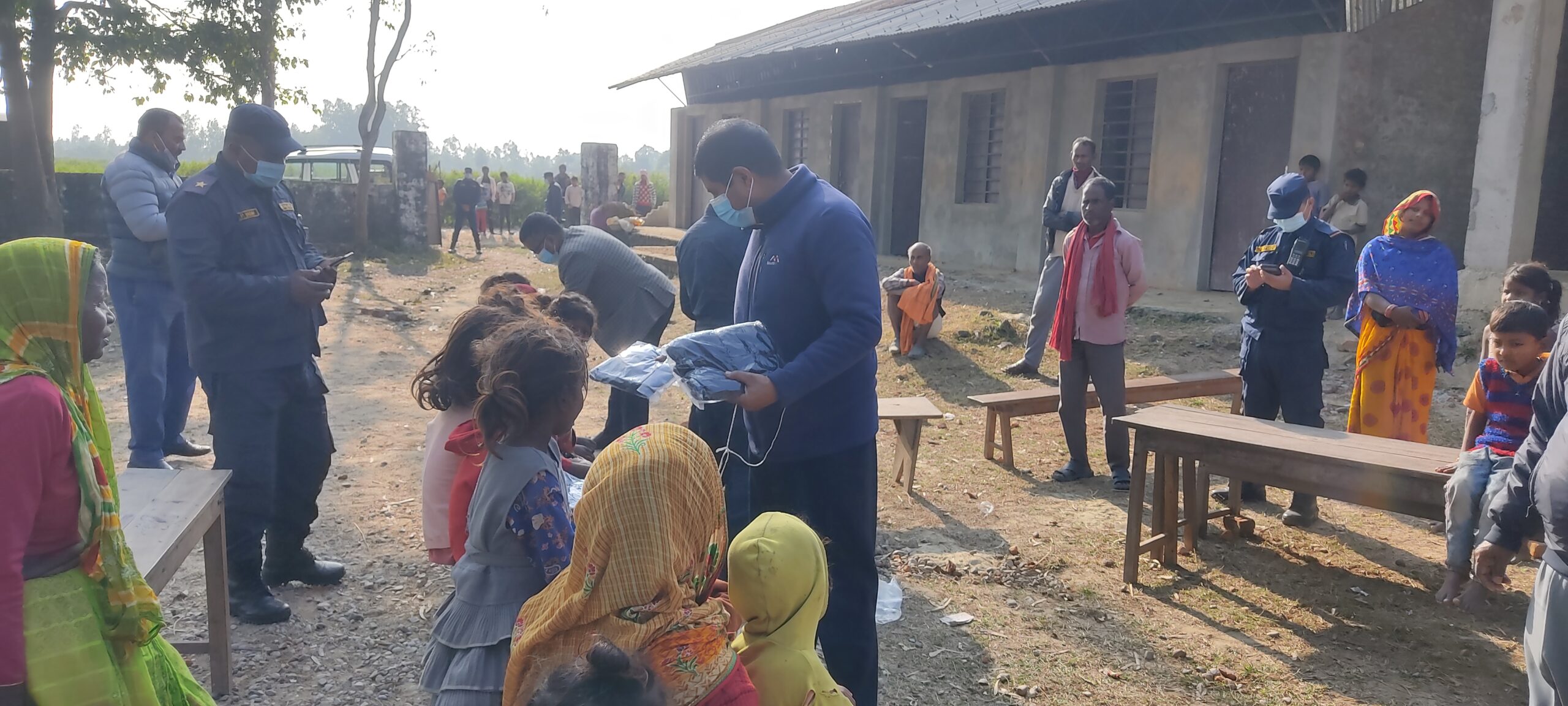 महोत्तरी- शितलहरले गर्दा महोत्तरीको जनजीवन प्रत्यक्ष रुपमा प्रभावित भएपछि जिल्ला विपद व्यवस्थापन समितीले दलित समुदायका बालबालिकाहरुलाई न्यानोकपडा वितरण गरेका छन् ।