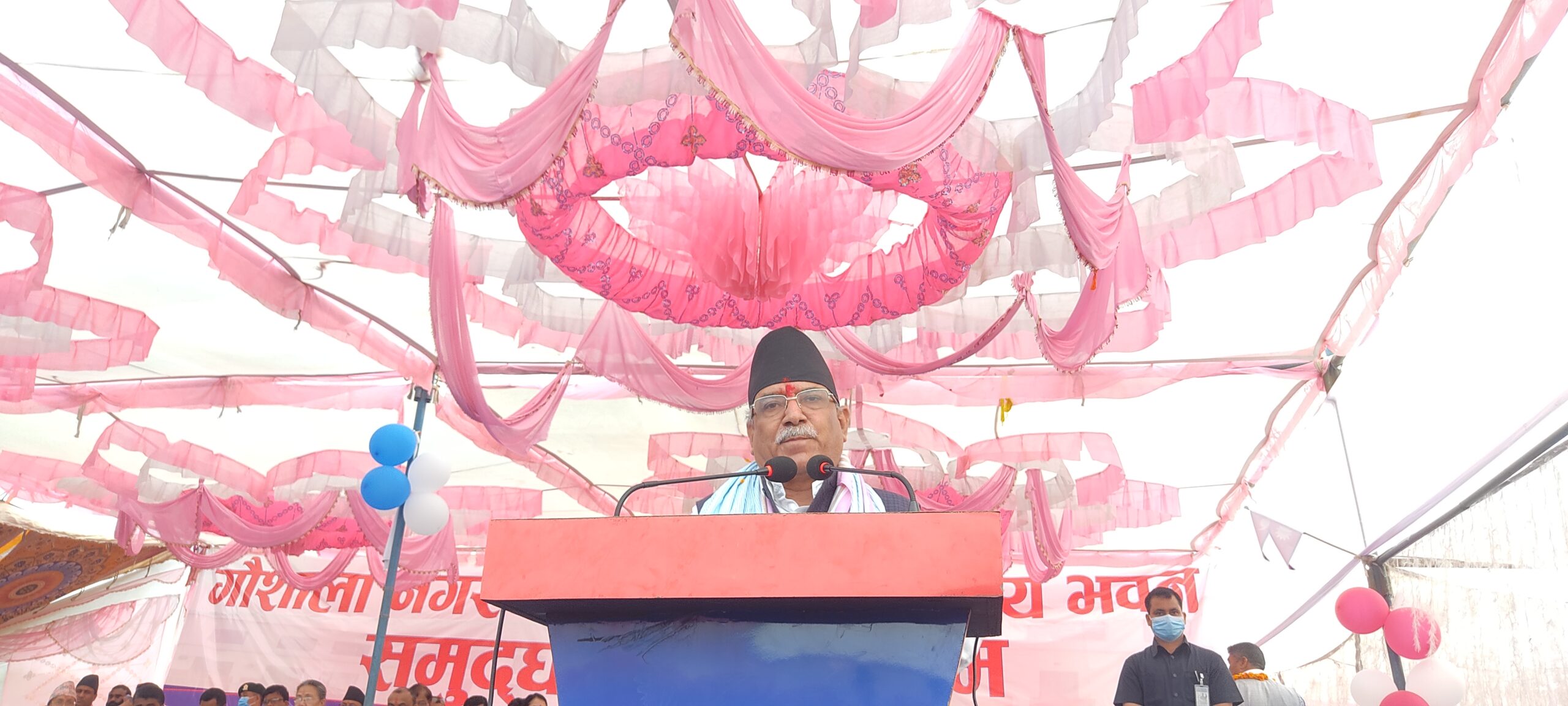 महोत्तरीको गौशालास्थित नविनिर्मित प्रशासकीय भवन उद्घाटन गर्न पुगेका अध्यक्ष प्रचण्डले ‘केपी ओली नामको गुट’ ले नेपालका हजारौं लाखौं नागरिकलाई नागरिकतावहीन बनाएको आरोप लगाए।