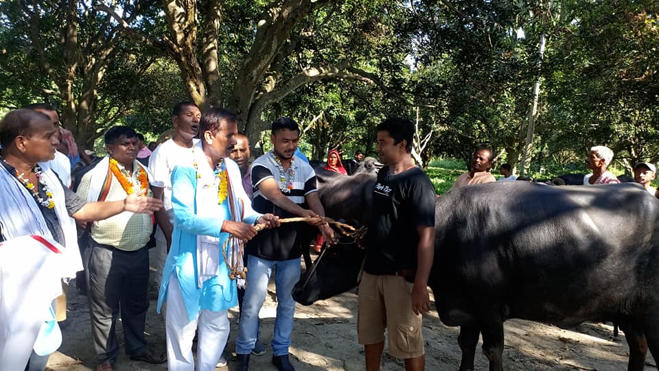 त्यसैगरी शनिवार नगरपालिकाको वडा नम्बर १० हारसरमा भैंसीको पकेट विकास कार्यक्रम अन्तर्गत ५०% अनुदानमा दुहुना भैंसी वितरण गरिएको छ ।