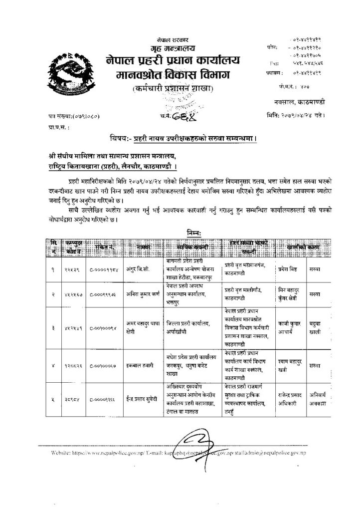 जसअनुसार काठमाडौं उपत्यकाका सबैजसो वृत्तका डीएसपी र जिल्लाका प्रहरी प्रमुख फेरिएका छन् ।