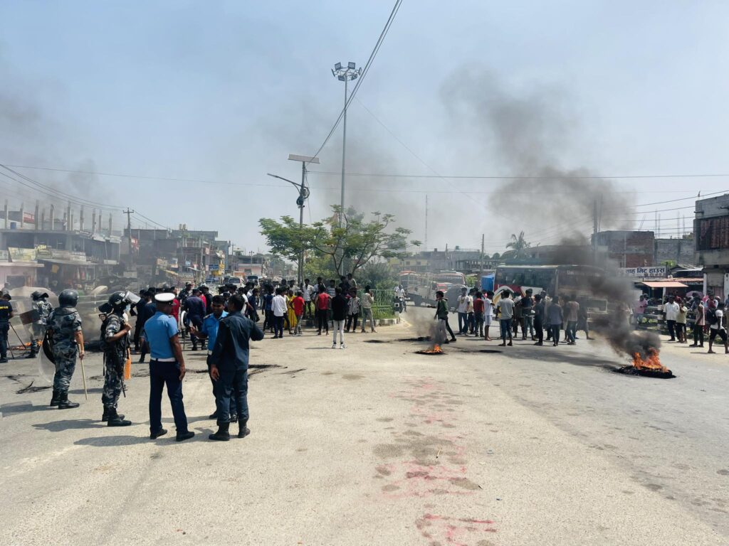 नागरिकताविहिन युवाहरुले ढल्केवर-जनकपुर लोकमार्गको महेन्द्रनगर सडक खण्डमा टायर बालेर बाटो अवरुद्ध गर्दै प्रदर्शनमा उत्रेका कारण सडक अवरुद्ध भएको छ।