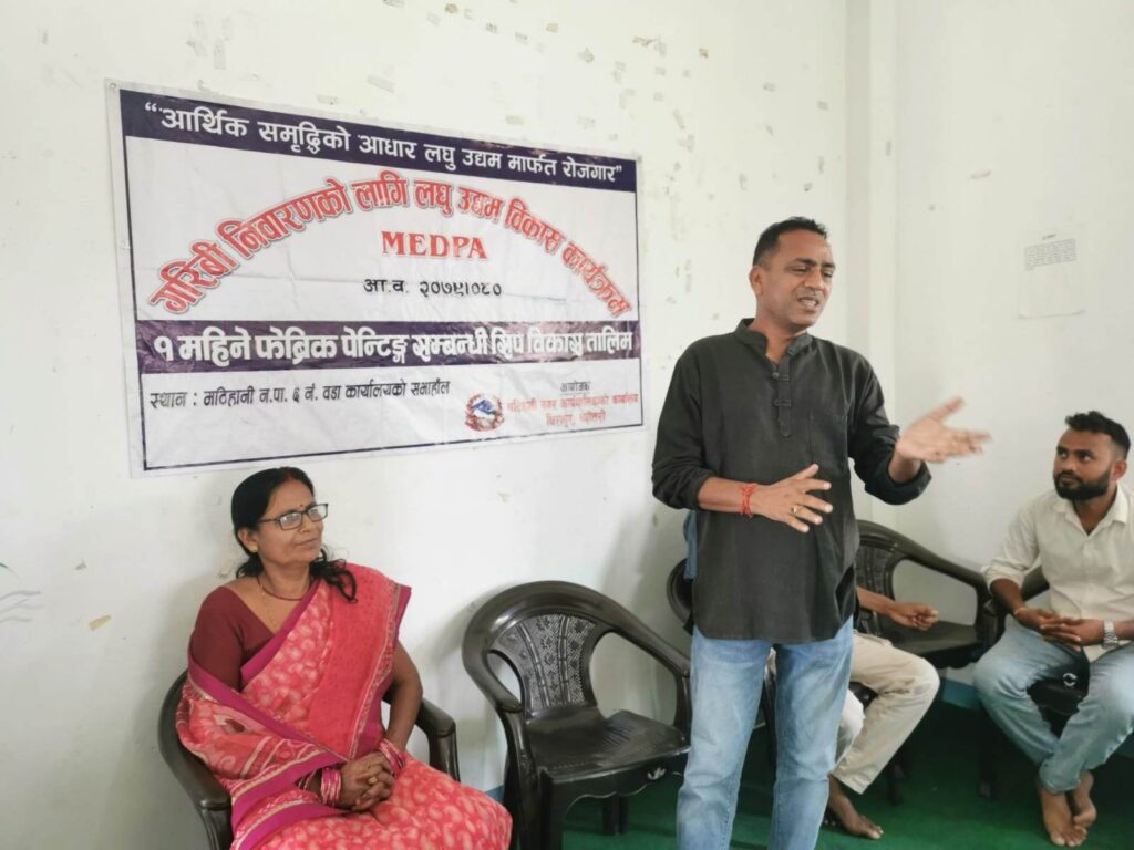 कार्यक्रममा लघुउद्यम शाखा प्रमुख कुन्दन मण्डल, शिक्षा संयोजक चन्देश्वर साह, प्रशिक्षक लगायतका सहभागी रहेका थिए ।