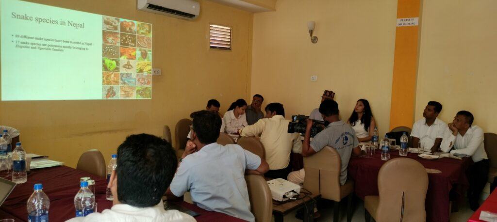 कार्यक्रममा वायोभ्याकका प्रतिनिधि डा. दिनेश कर्माचार्यले एन्टिस्नेक भेनम उत्पादनको विषयमा हालसम्म भएको प्रयास तथा अनुसन्धानको विषयमा जानकारी दिएका थिए भने सर्पमा विद्यावारिधी गरेका वेद प्रसाद पाण्डेले नेपाल तथा मधेश प्रदेशमा पाईने सर्पको विषयमा जानकारी दिनु भएको थियो ।