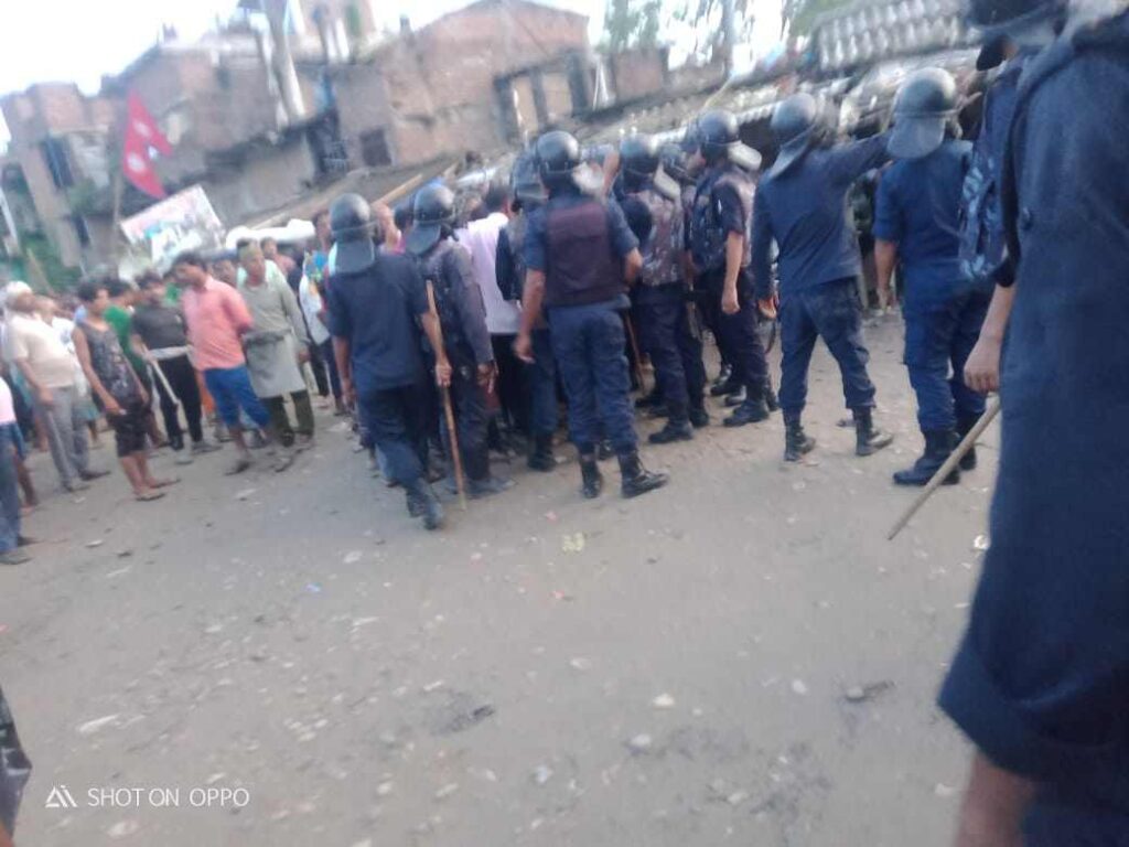 यता प्रहरीले साझ पख हिन्दू युवाहरू माथी लाठी चार्ज गरेपछि झडप सुरु भएको एक पसल सन्चालकले बताए । सुरक्षाकर्मीले महिला बालबालिका र निजि घर केही नदेखी अन्धाधुन्ध आँसु ग्यास प्रहार गरेको र आफनो घरमा रहेका मानिसहरुलाई समेत पक्राउ गरी लाठीचार्ज तथा कुटपिट गरेको उनिहरुको भनाई छ । प्रहरीको गोलि लागि एक जना घाइते समेत भएको बताइएपनि यसको पुष्टी हुन सकेको छैन।