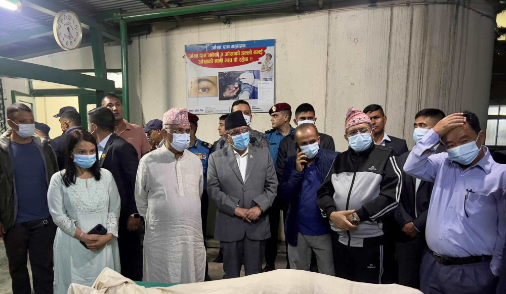 काठमाडौँ — संविधानसभाका अध्यक्ष एवं पूर्वसभामुख सुवासचन्द्र नेम्मबाङको निधनबारे बुझ्न प्रधानमन्त्री पुष्पकमल दाहाल, एमाले अध्यक्ष केपी शर्मा ओली लगायतका नेताहरु त्रिवि शिक्षण अस्पताल महाराजगञ्ज पुगेका छन् ।
