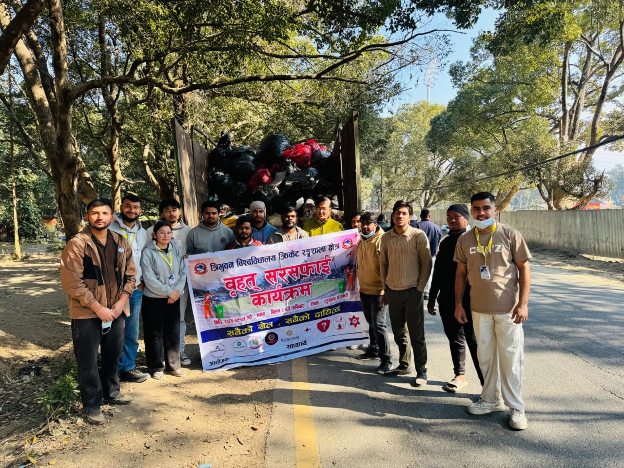 “हामी सबैको खेल,हामी सबैको दायित्व”नारासहित त्रिवि रङ्गशाला क्षेत्रमा वृहत् सरसफाइ सम्पन्न