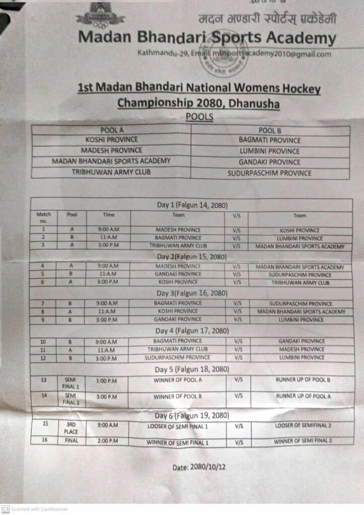 महेन्द्रनगर- धनुषाको क्षीरेश्वरनाथ नगरपालिकामा भोली सोमवार देखि प्रथम मदन भण्डारी राष्ट्रिय महिला हक्की प्रतियोगिताको आयोजना हुने भएको छ।