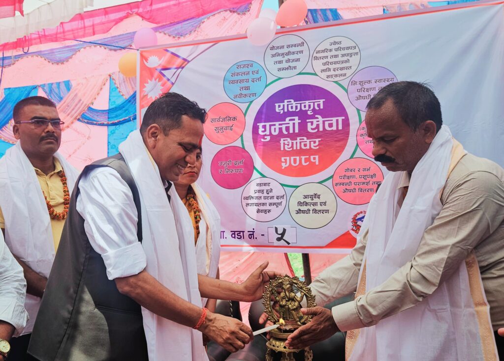महोत्तरी – महोत्तरी जिल्लाको मटिहानी नगरपालिकाले पालिका र वडाहरु बाट प्रदान गर्ने सम्पूर्ण सेवाहरु जनताको घरदैलोमै पुर्याउने उद्देश्यले आज देखि एकीकृत घुम्ती सेवा प्रारम्भ गरेको छ ।यसैबीच सो सेवा आज वडा नम्बर ५ (पाँच) को गोबरौरामा एक कार्यक्रम बीच मटिहानी नगरपालिका प्रमुख मेयर हरि प्रसाद मण्डलले संयुक्त रुपमा उद्घाटन गर्नुभयो ।