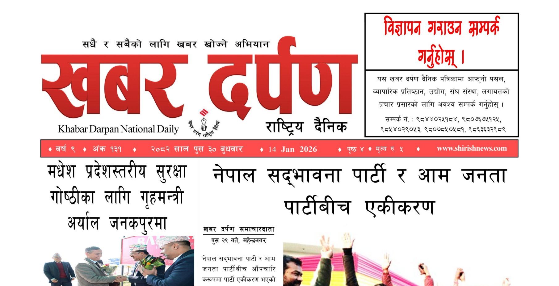 खबर दर्पण राष्ट्रिय दैनिक २० गते पुस २०८१