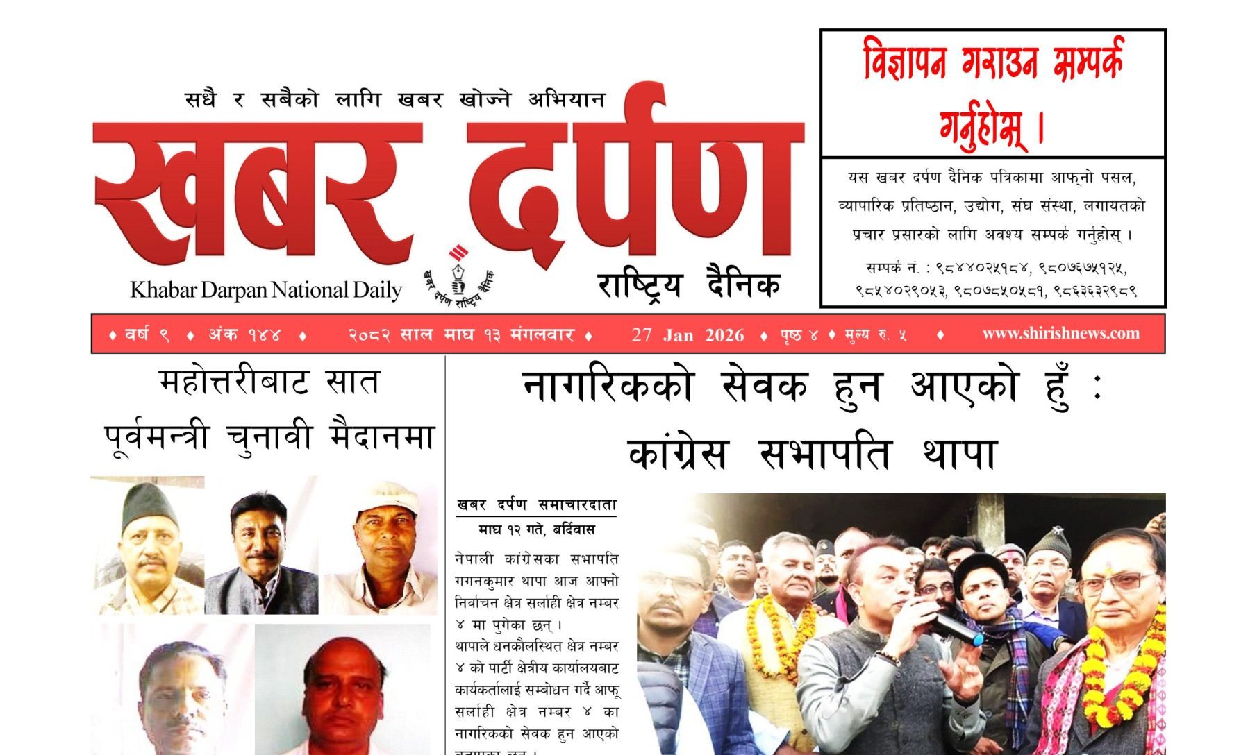 खबर दर्पण राष्ट्रिय दैनिक १२ गते माघ २०८२
