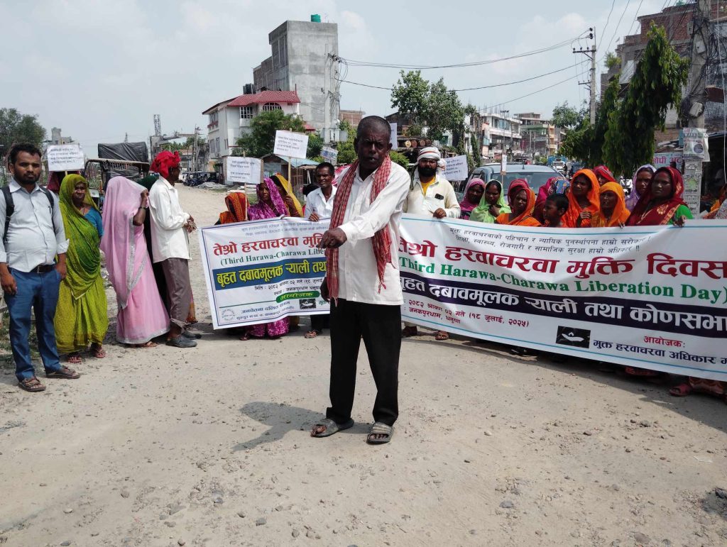 हरवा चरवा प्रथा मुक्तिको घोषणा भएको तीन वर्ष बितिसक्दा पनि सरकारले कार्यविधि पारित नगरेको, बसोबासका लागि जग्गा उपलब्ध नगराएको र पुनःस्थापनाको प्रक्रिया अगाडि नबढाएको भन्दै विरोध गरिएको हो। राष्ट्रिय हरवा चरवा अधिकार मञ्चका महासचिव लागेन्द्र सादाले प्रदेश सरकारलाई ध्यानाकर्षण गराउन दबावमूलक विरोध गरिएको बताए।फ्रिडम फण्ड, रास्ट्रिय दलित नेट्वोर्क नेपाल ,सिआईसी र जनचेतना दलित संगमको सहयोगमा आयोजित उक्त विरोध कार्यक्रम मार्फत मधेश प्रदेश सरकारका मुख्यमन्त्रीलाइ दवाब सहित चेतावनी दिइएको मुक्त हरवा चरवा अधिकार मञ्चको महासचिव लागेन्द्र सदाले बताउनु भयो ।
