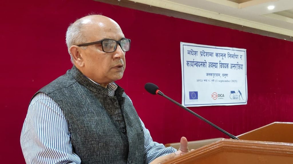 धनुषा – अनौपचारिक क्षेत्र सेवा केन्द्र (इन्सेक) मधेस प्रदेश कार्यालयको आयोजनामा भदौ १६ गते मधेस प्रदेशमा कानून निर्माण र कार्यान्वयनको अवस्था विषयक अन्तर्क्रिया कार्यक्रम जनकपुरधाममा सम्पन्न भएको छ ।