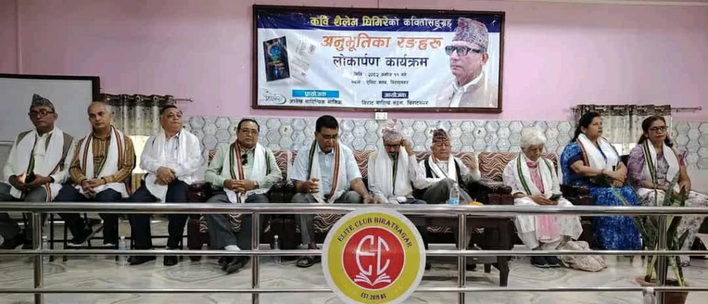 मोरङ । कवि शैलेन घिमिरेको कवितासङ्ग्रह ‘अनुभूतिका रङहरू’ विराटनगरस्थित एलिट क्लबको सभाहलमा लोकार्पण गरिएको छ । विराट साहित्य सङ्गमको आयोजनामा सम्पन्न कार्यक्रममा अग्रज कवि कुन्ता शर्मा प्रमुख अतिथि रहेकी थिइन् ।