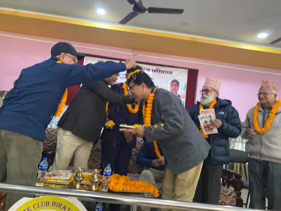 विराटनगर । पूर्वाञ्चल साहित्य प्रतिष्ठान, विराटनगरको आयोजनामा साहित्यकार चूडामणि नेपाल ‘अकिञ्चन’को लघुकथासङ्ग्रह ‘धुवाँको रङ’ को लोकार्पण समारोह एलिट क्लबको सभा हलमा सोमबार सम्पन्न भएको छ।