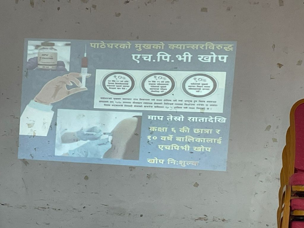 पाठेघरको मुखको क्यान्सर महिलामा देखिने प्रमुख क्यान्सरमध्ये एक भएकाले यसबाट हुने मृत्युदर न्यूनीकरण गर्न एचपीभी खोप प्रभावकारी माध्यम रहेको विज्ञहरूले बताएका छन्। एचपीभी भाइरसका कारण हुने संक्रमणबाट भविष्यमा पाठेघरको मुखको क्यान्सर हुन नदिन किशोरी अवस्थामै खोप लगाउनु अत्यन्तै सुरक्षित र प्रभावकारी हुने जनाइएको छ। एचपीभी खोप पूर्ण रूपमा सुरक्षित, गुणस्तरीय तथा सरकारले निःशुल्क रूपमा उपलब्ध गराएको खोप भएको अभिमुखीकरणमा जानकारी दिइयो।