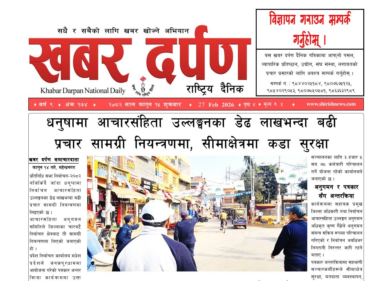खबर दर्पण राष्ट्रिय दैनिक १५ गते फागुन २०८२