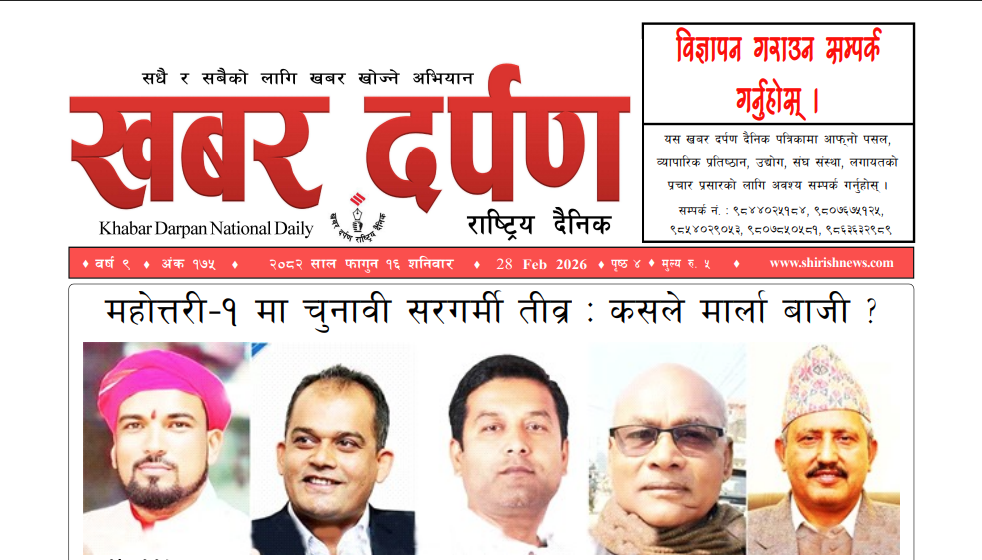 खबर दर्पण राष्ट्रिय दैनिक १४ गते फागुन २०८२