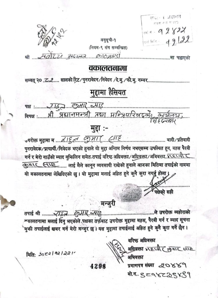 रौतहटको गरुडा नगरपालिका–८ निवासी १९ वर्षीय राहुल कुमार साहले प्रधानमन्त्री तथा मन्त्रिपरिषद्को कार्यालयसहित सम्बन्धित निकायलाई विपक्षी बनाएर उत्प्रेषण, परमादेशलगायतका आदेश माग गर्दै रिट दायर गरेका हुन् ।