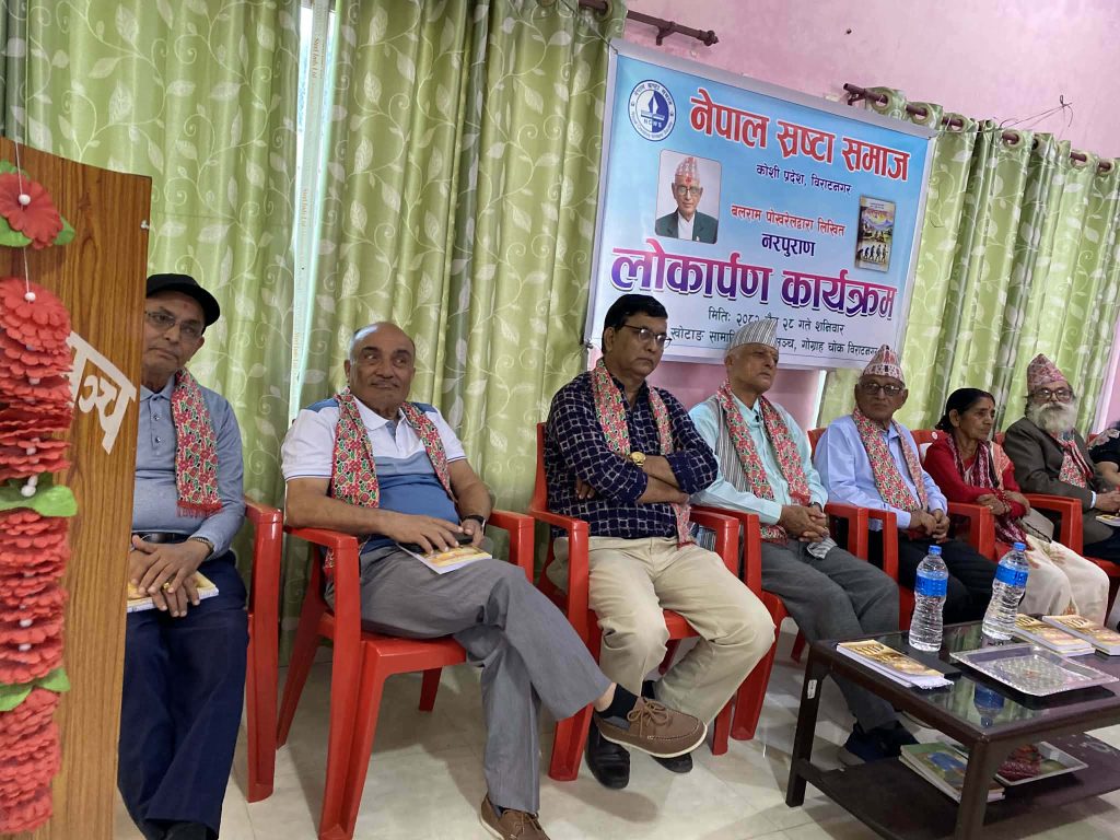 विराटनगर । साहित्यकार बलराम पोखरेलको नवीन कृति “नरपुराण” सार्वजनिक गरिएको छ। नेपाल स्रष्टा समाजद्वारा प्रकाशित उक्त कृतिको एक समारोहबीच खोटाङ सामाजिक सेवा मन्चको सभा हलमा शनिबार लोकार्पण गरिएको हो।