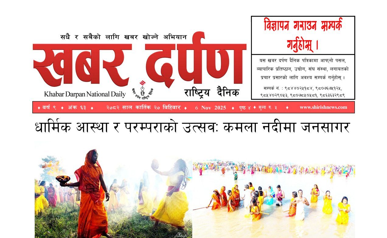 खबर दर्पण राष्ट्रिय दैनिक २६ गते कात्तिक २०८२